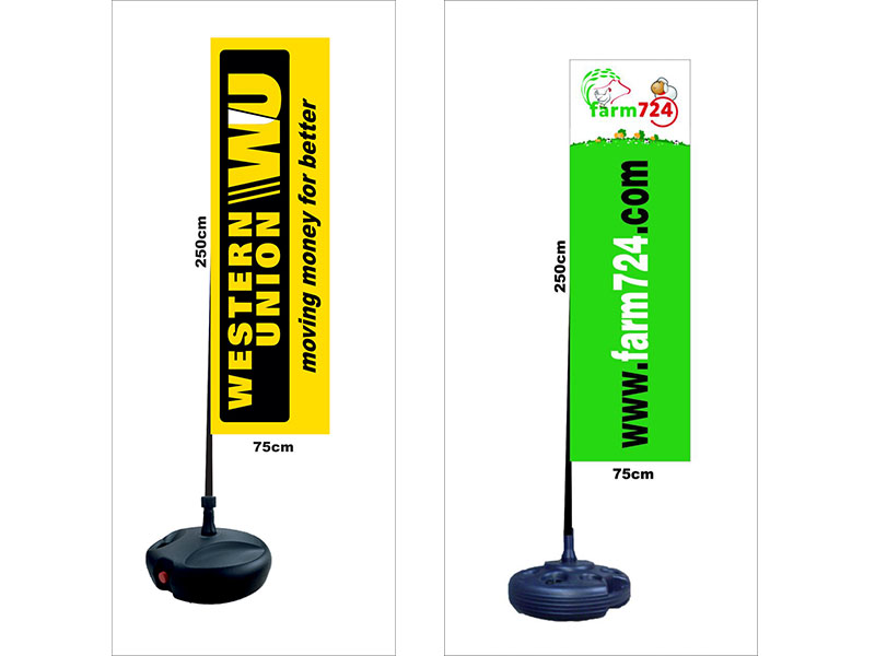 يستعمل هذا النوع من رايات الدعاية أمام المحلات التجارية ، و الشركات كلافتات إشهارية في الشوارع و الأماكن العامة ، نقوم بصناعة هذا النوع من الرايات ،( الرايات الشاطئية ) على غرار رايات الشراع الإشهارية ، رايات القوارب ، ورايات دعاية أخرى...