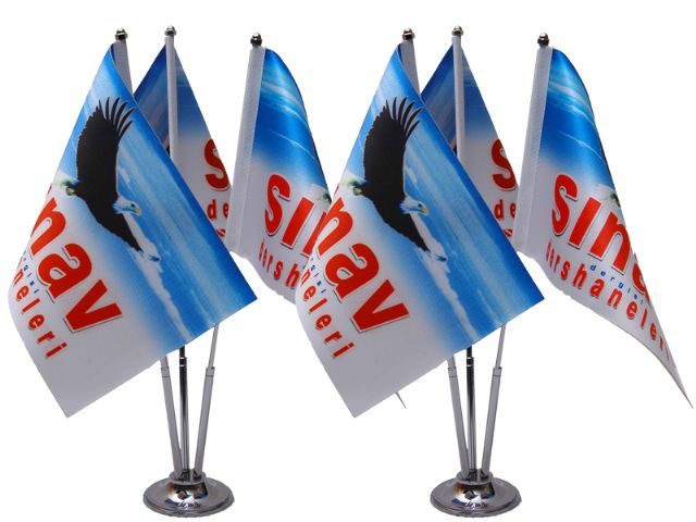 يتم إستعمال رايات المكتب على المكاتب و الطاولات و الرفوف ، يتم تصنيعها من جانبين مزدوجين بإستعمال ثوب الساتان مقاس 22.5x15 سم، عن طريق آلات رقمية حديثة و متطورة ، و كفاءات مهنية ذات تجربة محترمة في في هذا المجال .
